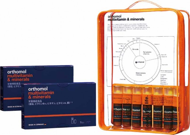 日本上陸以来コフレ初登場!健康的な毎日を支えるサプリドイツの医師と薬剤師が監修する『オーソモル マルチビタミン&ミネラル(14日分)』とポーチのセット。オーソモルボトル7日分を美しく収められる、取り外し可能な専用プレートを装備したポーチは1週間の旅行に最適なサイズ感。