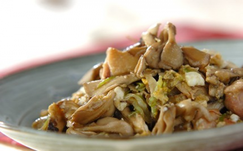 2、<ニンニクじょうゆ>を加え、全体にからまったら器に盛る。
