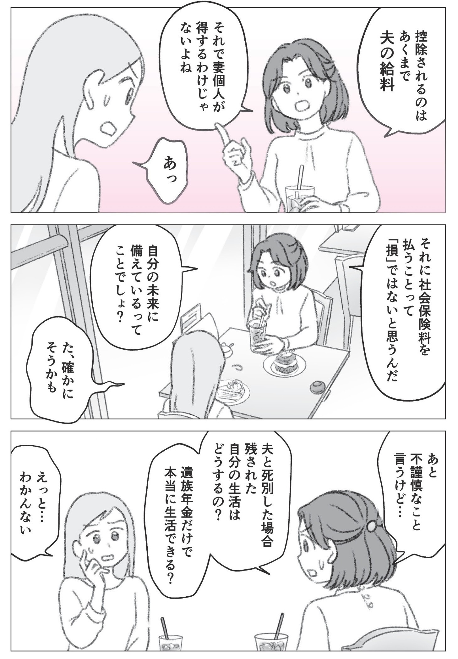 会社員や公務員の配偶者に扶養されている人の年金は「第3号被保険者」と呼ばれますが、世間的に風当たりが強くなっているのも事実。将来同じ制度が続くとは限りませんし、妻自身が働いて入る厚生年金は国民年金よりも手厚い保障があり、働けば働くほど年金額を増やすことも可能とのこと。