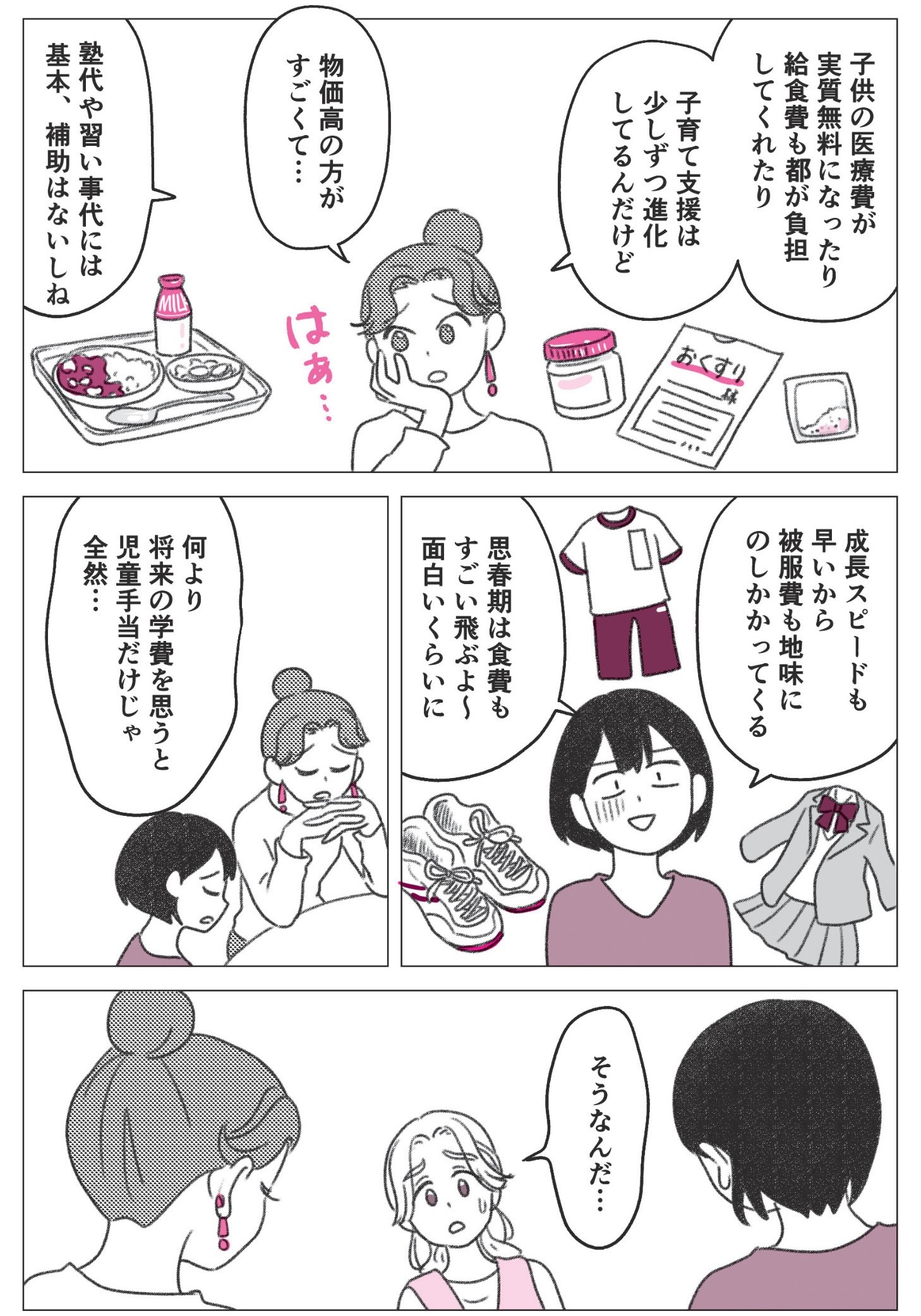 女性の平均寿命はどんどん伸びており、夫より長生きする可能性が高いことや、離婚した夫婦の5割以上が養育費を受け取っていないこと等々、「旦那がいればどうにかなる」「公的な制度が守ってくれる」と楽観視することのリスクを丁寧に説明してくれています。