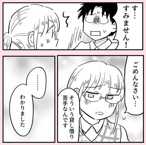 搾取につながりやすい「貸し借り」が苦手なののかは、即座に断わって辻森を驚かせます。