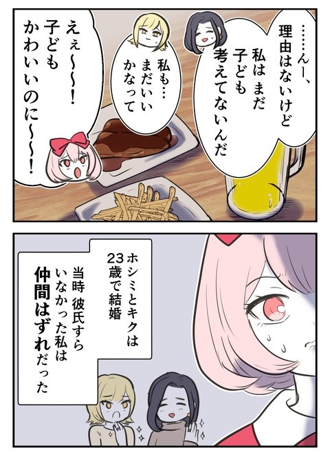 主人公の思いとは裏腹に「まだ子どもを考えていない」と返す友人たち。