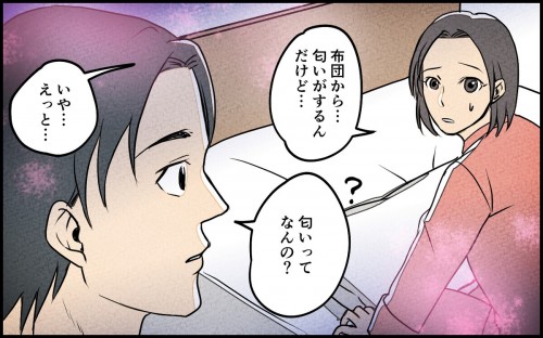 奈未は驚きを隠せませんでした。そんな中、雨が降ってきたため、夫に車で迎えにきてもらったのですが、車に乗るとまたあの匂いがしたのです。そして、その匂いが、ピアノのゆうこ先生の匂いと似ていると感じた奈未は…