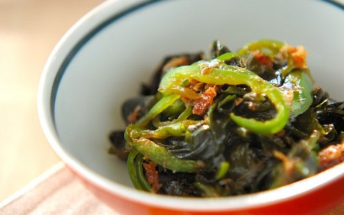 乾物ストックのワカメを使う、手軽なきんぴら。やわらかなワカメにピーマンの歯応えがよく合い、くせになる食感です。干しワカメでも生ワカメでもOK。あと1品足りない時にも最適です。