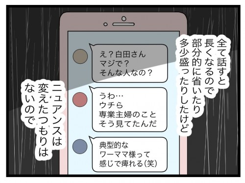 同じ幼稚園のバス停を使うワーママ・白田さんから、「働きながら連絡係をやるのはしんどい」と相談された専業主婦・黒木さん。昨年、同じ係を担当した黒木さんは「専業主婦だから代わりにやれるでしょ…ってこと?」と苛立ち、「ワーママの横暴だ」と一喝する。
