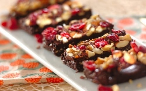 材料をフードプロセッサーで混ぜたら冷やし固める、お手軽ロースイーツです。しっとりとした生地にナッツのザクザク感がよく合い、栄養も満足感もたっぷり。小麦粉・乳製品・白砂糖不使用で、健康志向の方にもイチオシです。