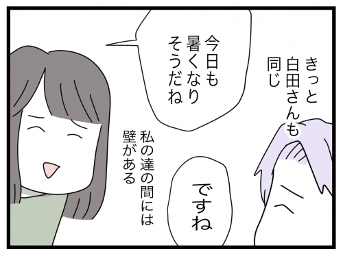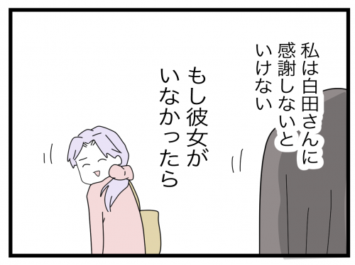 そんな中、白田さんがバス通園をやめてしまい、リーダー・阿久澤さんが再び黒木さんを連絡係に任命する。黒木さんが幼稚園に相談すると、先生は「園非公式の係です」と即刻解散を宣告。「自分はやったのに不公平だ」と思う黒木さんだったが、いつしか自分がされて嫌だったことを白田さんにしていたことに気づく。