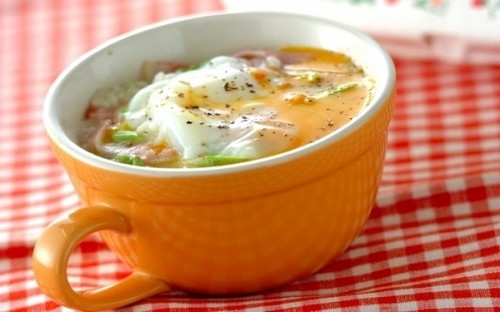 小腹が空いたときにマグカップでぱぱっと作れるお手軽ごはん。クリームスープの素やベーコンでカルボナーラ風の味付けが簡単に決まります。洗い物が少ないので、ひとり暮らしの方にもおすすめです。彩りに冷凍野菜などを加えてもおいしいですよ。