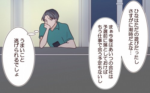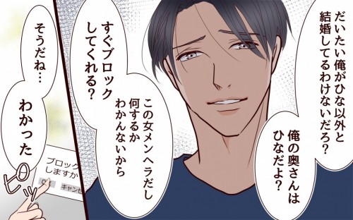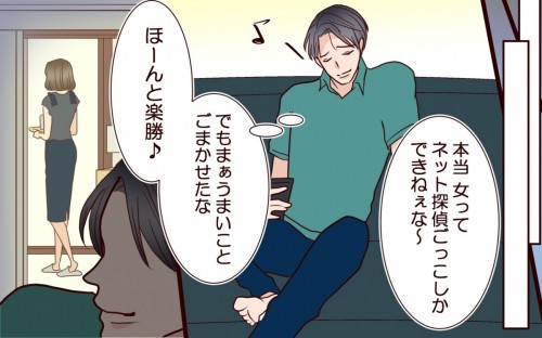 ・この男、相当、自分に自信があるみたいだけど…危機管理能力は全くないね…。妻に浮気がバレてる時点で、妻から捨てられるかも…って想像力もないし…。義父が重役だったら、職を失う可能性もあるのにね…。周りを甘く見すぎると痛い目にあいますよ。