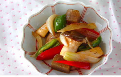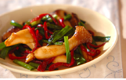 エリンギを赤パプリカやピーマンなどと一緒に炒めれば完成です。野菜のシャキシャキ感とエリンギのジューシーさが絶妙にマッチします。キノコ類と相性の良いオイスターソースで味付けするため、飯がどんどんと進みますよ。