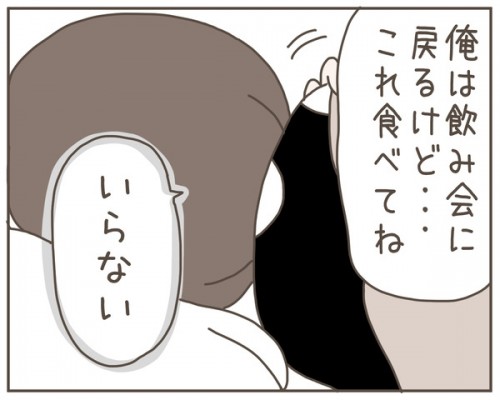 つわりが終わるまでの辛抱だと考える夫だったが、1ヶ月前から許可を得ていた飲み会の日、今すぐヨーグルトが食べたいと連絡が来る。夫が断ると、妻から「また食欲がなくなったらたけるのせいだから」と言われて…。