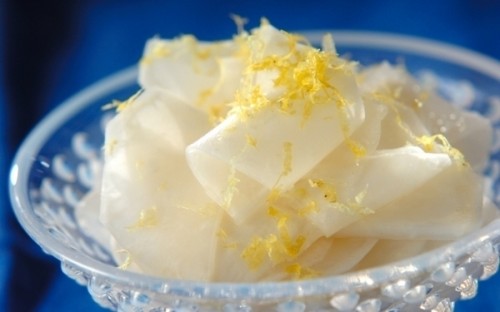 漬物の定番、甘酢漬けにレモンの爽やかな香りをプラス。白と黄色のコントラストが食卓に彩りを添えます。やさしい甘さなので、和食はもちろん、カレーや丼ものの付け合わせにも最適です。