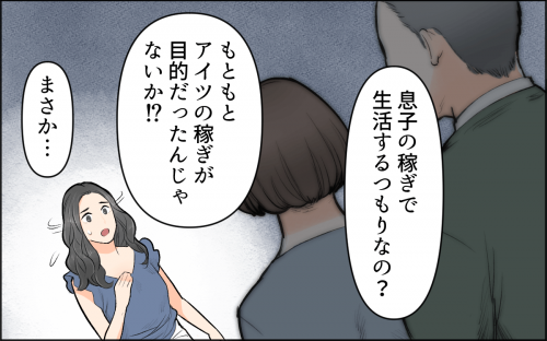 「専業主婦なんて、ただの穀潰しよ」?。主人公のいないところで、平然とそう言い放つ義母。主人公の選択や努力を一切認めず、ただ“息子の稼ぎに寄生する存在”としか見ていなかったのです。あまりにも残酷な本音。夫は、この義父母から、妻である自分を守ってくれるのでしょうか…。