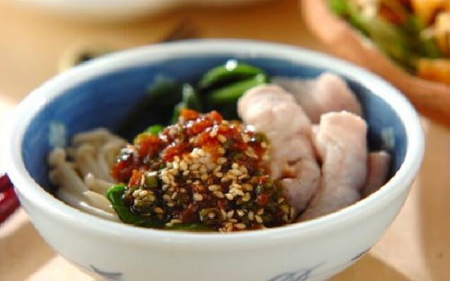 コチュジャン入りのピリ辛漬けダレで、いつもとはひと味違う韓国風の一品に。具材は豚肉・ホウレン草・ゴボウとシンプルながら、それぞれの旨味が引き立ち、つけダレとの相性も抜群です。タレに入れる薬味の量を調整して、お好みの味にしましょう。