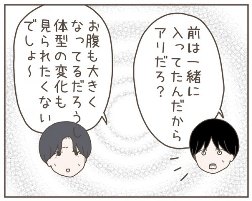 たしかに、妊娠中は夫と一緒にお風呂に入るのはイヤだという女性も多いかもしれません。それ以前に、普段からスキンシップが足りていないのに、いきなりお風呂とか論外ですが…。