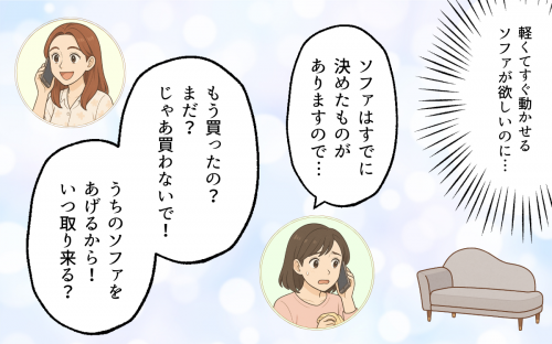 ■それは本当にやさしさ?義姉の押し付けが止まらないソファを押し付けようとする義姉は、まるで「あなたの選択より私の判断が正しい」と言わんばかり。