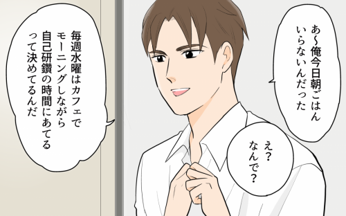 毎週水曜は「自己研鑽の日」と言って朝ごはんも食べずに出かけていく夫。