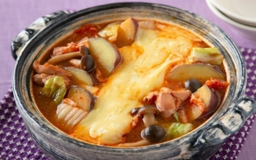 コチュジャンやみそなどで作ったコク深いスープに、後を引くキムチの辛みがくせになります。シャキシャキのキャベツやホクホクのサツマイモの甘みがスープにしみて、箸が止まらないおいしさです。腸活にもうれしい発酵食品がしっかり摂れるのも◎。玉ネギやニンジンなどを加えるアレンジも最高です。
