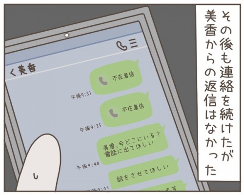 偶然、鉢合わせた義母に話を聞こうとするも、どうやら妻はここには帰っていないようで…?