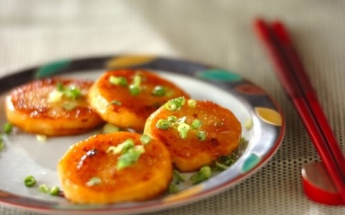 ほっくり柔らかい長芋と甘い田楽みそが好相性。電子レンジで手軽に作れる味噌だれは、おでんやおにぎりなどにも活用できます。出来立て熱々で食べるのがイチオシ。日本酒も用意して、秋の夜長を満喫しましょう。