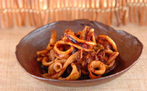 スルメイカを甘辛味に煮ます。スルメイカは煮汁で1〜2分ほどサッと煮た後、いったん取り出しましょう。煮詰めた煮汁に戻し入れることで、より濃厚な味わいになります。ご飯の上に煮汁ごとかけてイカ丼にするのも良さそうですね。