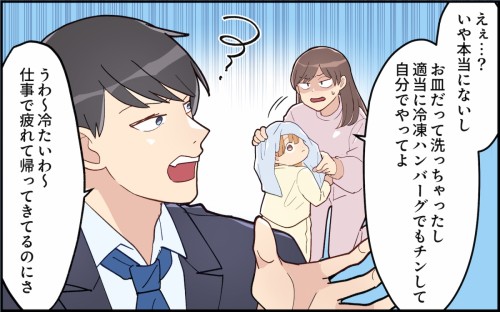 子育てしてるだけでも精一杯なのに、夫の面倒まで見てられない!! そして妻の怒りはピークに…。
