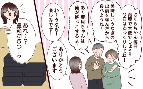 遠方に住んでいる義両親との同居を断ってしまった手前、「毎日孫の顔が見たい」という義両親のお願いを受け入れた紗奈さん。