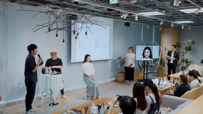 • 仕上げに、ミスト状化粧水をかけてあげる。ひと振りするだけで顔の表面を整え、化粧くずれを防げる。