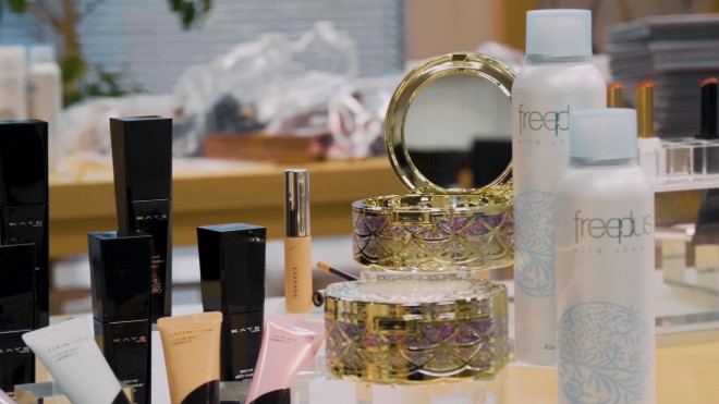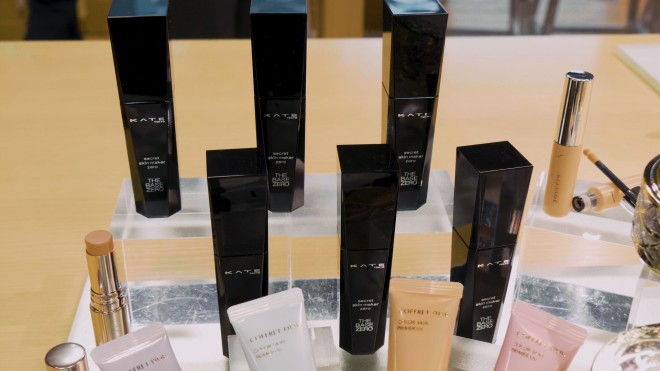 • ベースメイク。カラーコントロールの下地、ファンデーションを塗る。ステージ用ライトの熱によって化粧崩れしないよう、下地は数種類重ねる。ファンデーションはブラシで塗り、表情筋などのシワに入り込まないようスポンジでたたき込む。