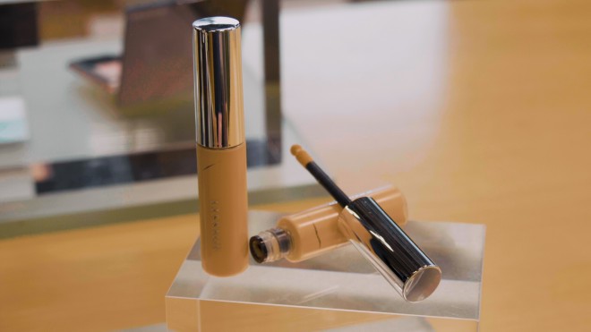 • 小鼻のキワ、口元、目元など、気になる部分にコンシーラーを塗る。コンシーラーブラシでたたき込むことで、肌にもなじみやすい。