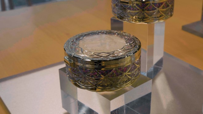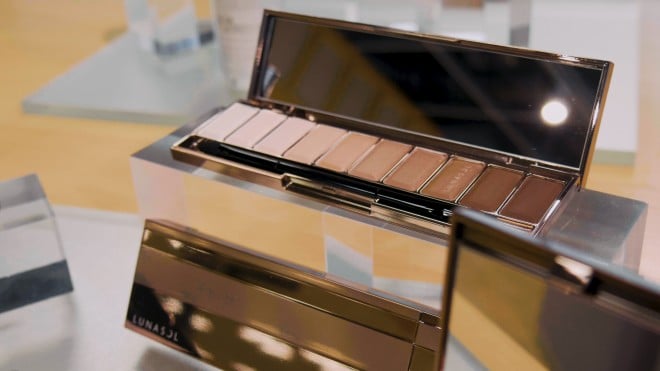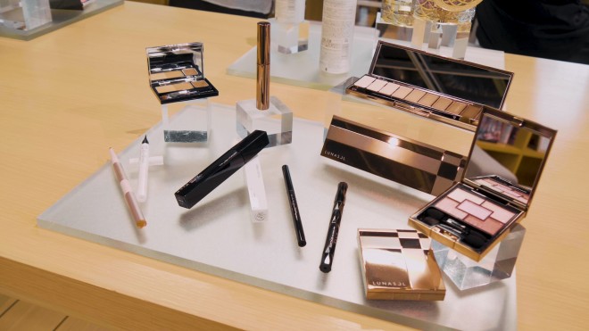 • アイシャドウを塗る。大きなラメの入ったグリッターアイシャドウではなく、肌に馴染のいいラメアイシャドウを使うことで、目元に立体感やツヤ感をプラス。アイシャドウを重ねても、色がくすみにくくなる。