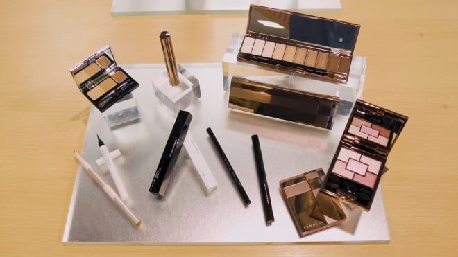 • アイライナーをひく。インラインはペンシルアイライナーで仕上げる。目尻はリキッドアイライナーで仕上げる。アイラインをひいた後は、半乾きの状態でブラシを入れてぼかしてあげる。