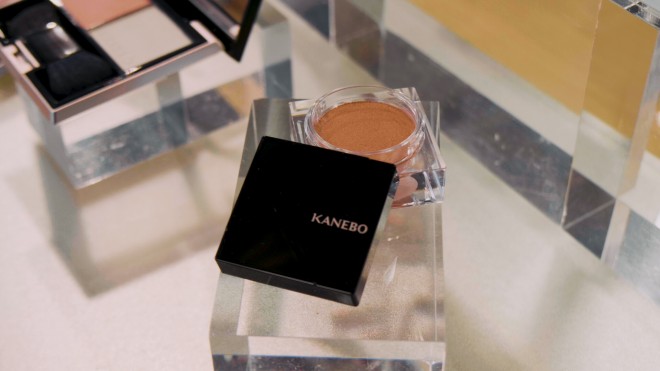 • アイシャドウベースを指でつける。しっかり伸ばすことで、発色がよくなる。上まぶたと下まぶた両方につけてあげる。上と下でつける指をかえ、余分なものはしっかり取ってあげる。