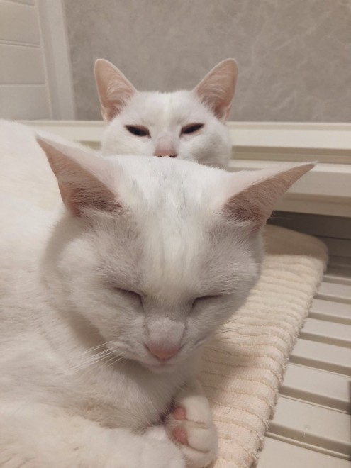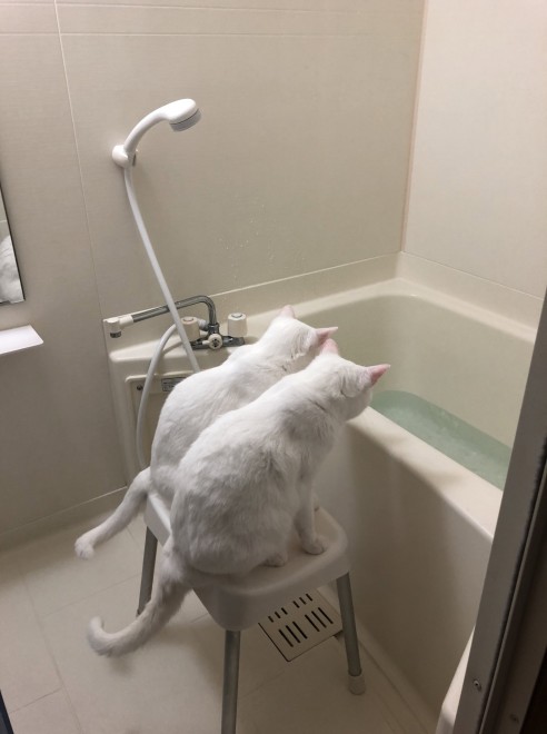 【猫】“今日のお湯張り観察”に反響の仲良し白猫