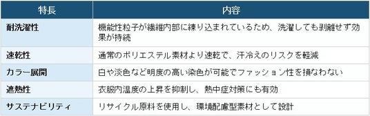 近赤外線を吸収するレアセラミック微粒子を練り込んだ糸と、紫外線を反射する酸化チタンを練り込んだ糸を組み合わせた特殊素材