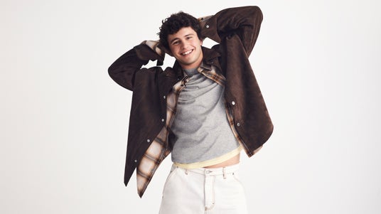 本コレクションでは、構築的なトレンチコートやスエードのオーバーシャツジャケット、軽量ウィンドブレーカーといった、季節の変わり目に最適なシグネチャーアウターが際立ちます。