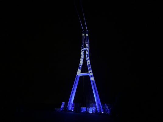 演出イメージ(つり橋の主塔/写真はテスト試写の様子。実際の演出と異なる場合がございます)