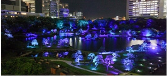 旧芝離宮恩賜庭園は、江戸初期に造られた大名庭園の一つで、回遊式の泉水庭園です。かつて海であった場所を埋め立てて造られ、往時は海から大泉水(池)に海水を取り入れ潮の満ち引きとともに景色が移ろいました。石、山、池、木々のひとつひとつに、深い意思と歴史が宿り、それは今も静かに息づいています。今回は、庭園全体のライトアップにとどまらず、景石、築山、池、浜、島などにスポットライトを当て、大泉水や勇壮な石組に、海面や往時の潮の満ち引きを彷彿とさせる幻想的な風景を演出します。