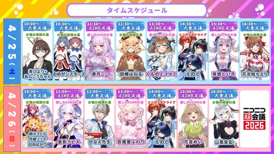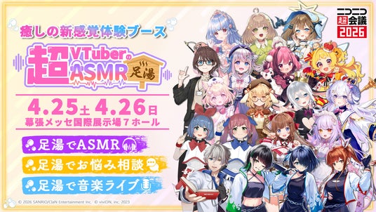 株式会社ドワンゴは、2026年4月25日(土)・26日(日)に幕張メッセで開催する「ニコニコ超会議2026」において、「VTuber」「ASMR」「足湯」を掛け合わせた体験型ブース「超VTuberのASMR足湯」を実施することをお知らせします。
