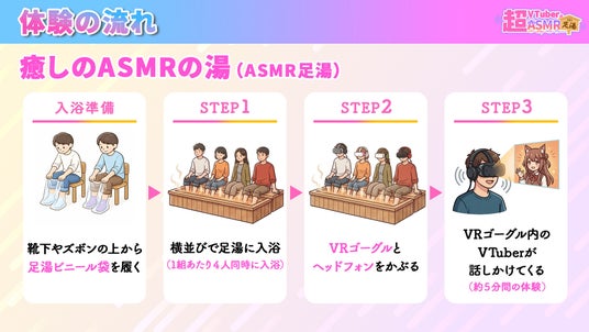 癒しのASMRの湯足湯に浸かりながら、VTuberによるリアルタイムのASMRを楽しめる足湯です。