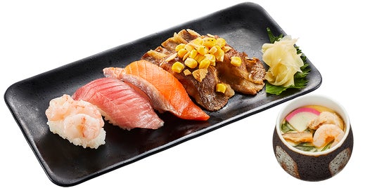 さらに、ゴールデンウィーク後もご家族での外食をお楽しみいただけるよう、「大切り&お値段そのまま50%増量祭り」と連動した、食べ放題限定メニュー『旬ネタ!期間限定セット』が新登場いたします。「大切りサーモン」や「大切り中とろ」、50%増量中の「甘海老にぎり」といった人気ネタに加え、「牛カルビ&コーンペッパー(二貫)」など、バラエティ豊かな味わいを一皿に凝縮。“どれから食べるか迷う楽しさ”と“しっかり満足できるボリューム”を両立した一皿に仕上げました。ご家族やご友人同士でのご利用はもちろん、初めて食べ放題をご利用される方にもおすすめの内容です。