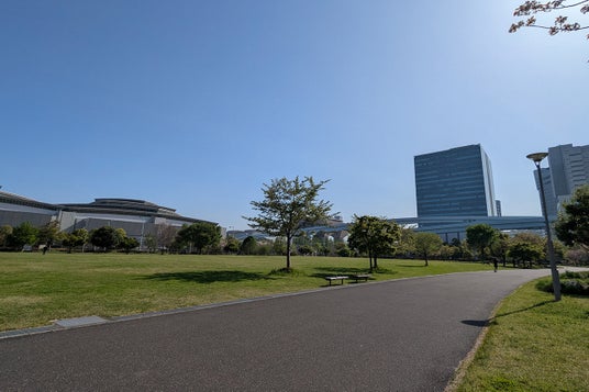 海や生い茂る木々、都心とは思えない広大な空と芝生をバックにした撮影が楽しめます。